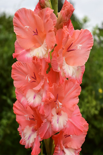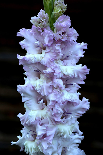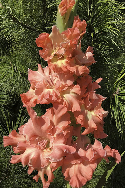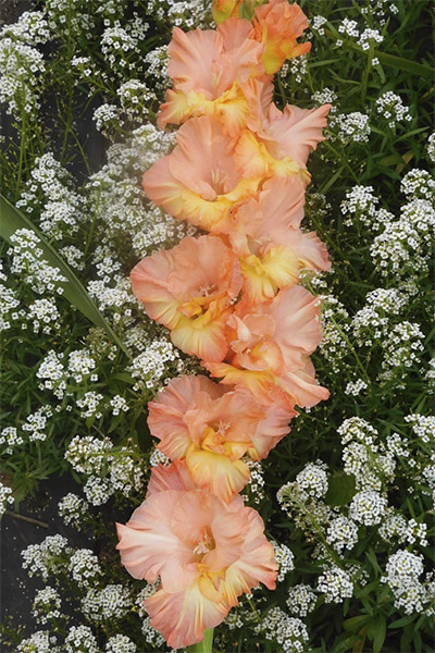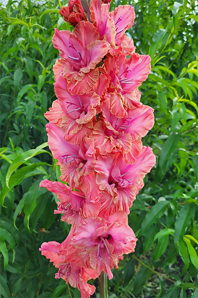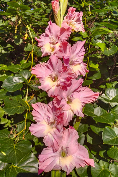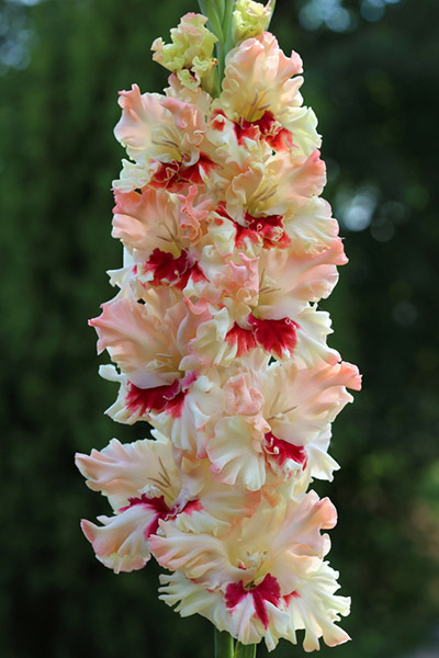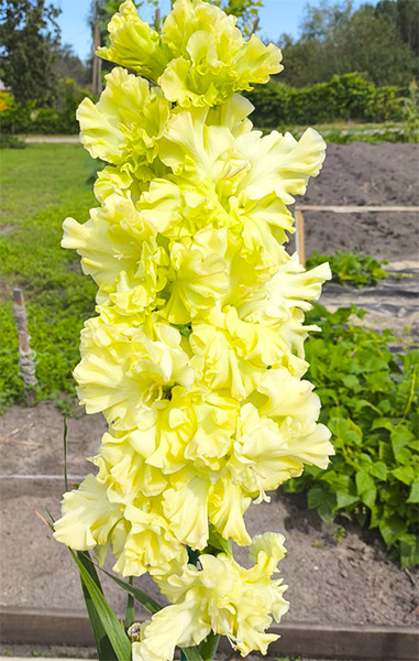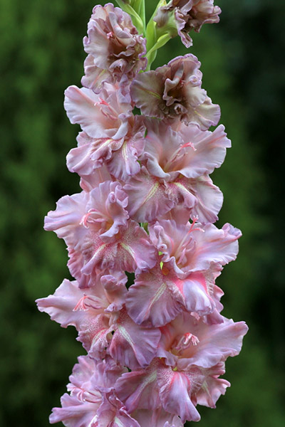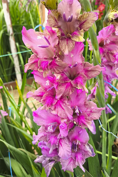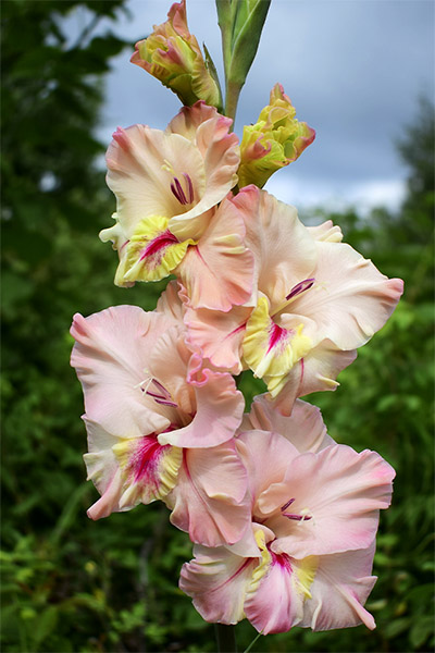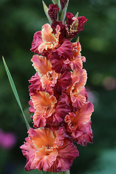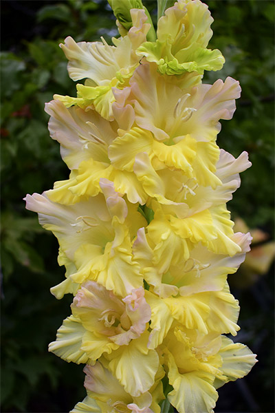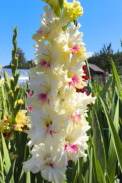 Салатово-жёлтый с розовым центром лепестков. Прочный колос, хорошее размножение