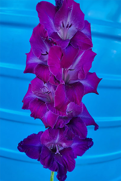 Сине-фиолетовый, на нижнем лепестке темно-синее пятно на белой подложке.