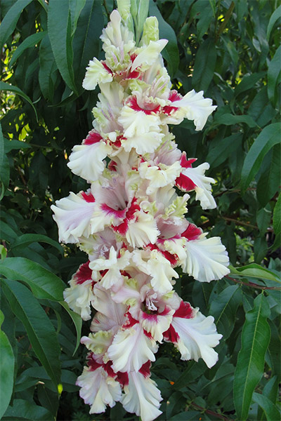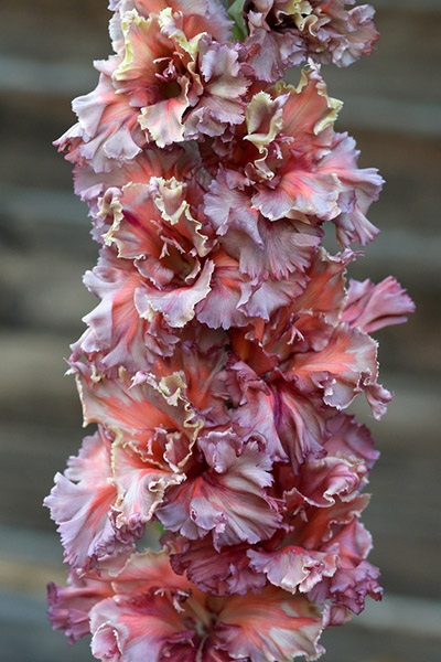 Салатово-жёлтый с розовым центром лепестков. Прочный колос, хорошее размножение