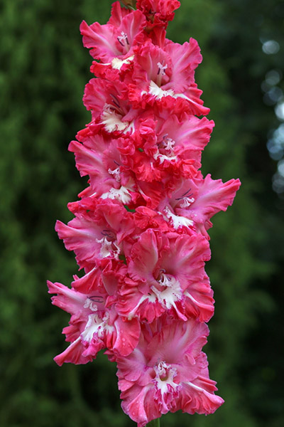 Переливы малинового, с высветлением в горле, на нижних лепестках белое пятно.